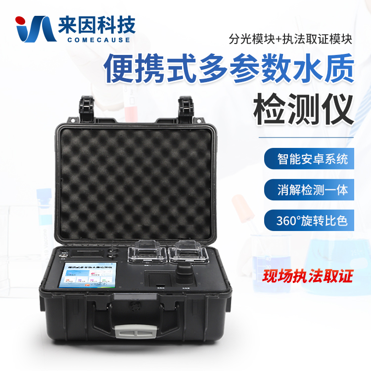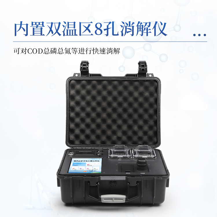 简要描述: 便携式多参数水质检测仪采用高强度PVC工程塑料手提箱设计,消解检测一体式设计,其中消解模块具备双温区功能,检测部分同时具备360°旋转比色管检测和比色皿检测,安卓智能操作系统,8英寸高清液晶触摸屏,光纤检测技术,进口光源,内置大容量锂电池,现场执法取证模块,便携多参数水质检测仪具有性能稳定、测量准确、测定范围广、功能强大、操作简单等特点。