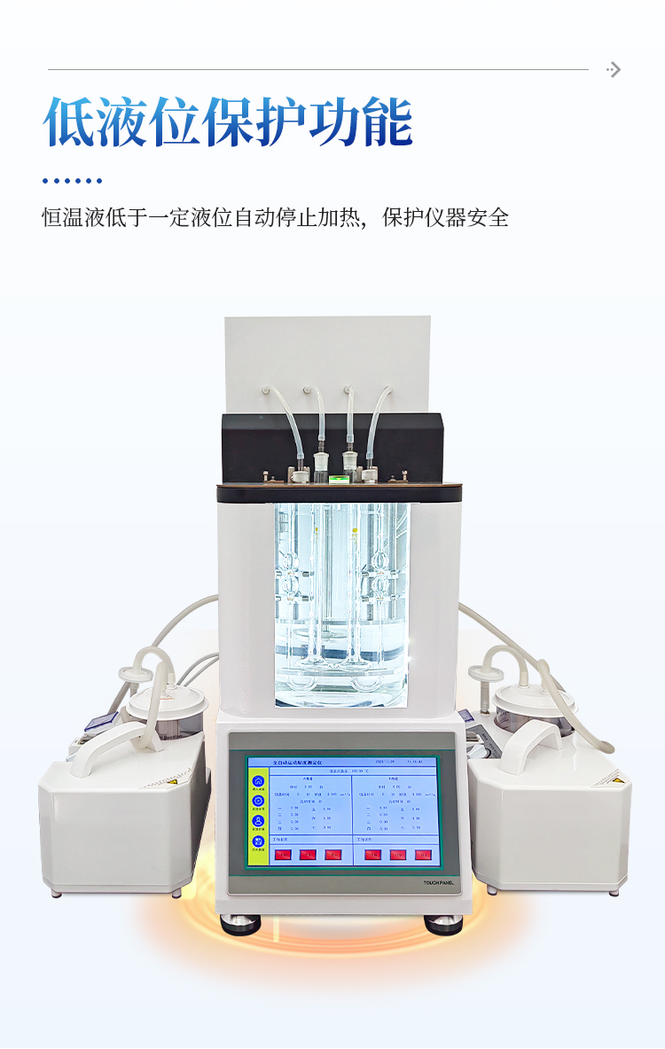 6.全自动恒温、油样上吸、粘度检测、计算、打印、粘度管清洗、烘干粘度管、不需要人工操作,仪器自动完成所有流程,结果自动保存。