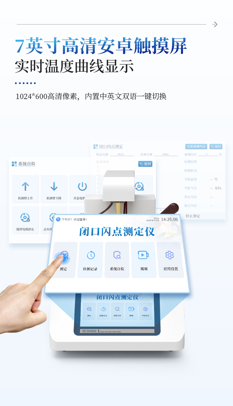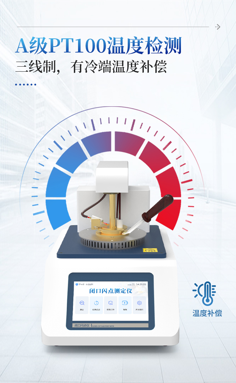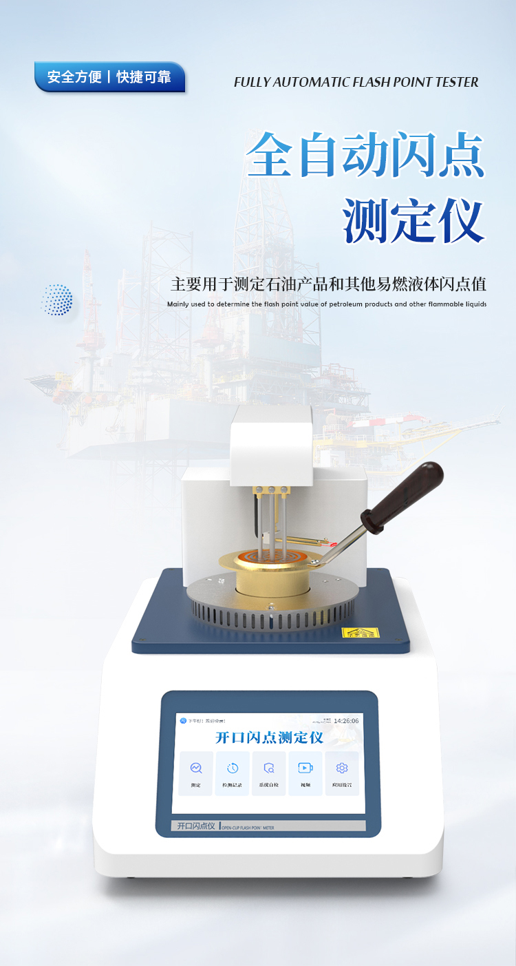 D92)或GB/T 267-88的情况下,连续测试同一样品,两者闪点值相差≤4℃。4、自动化程度高。可以自动完成测试过程,自动进行冷却,自动信息提示等。开口闪点测定仪功能与性能和国内外最高水平接轨,是石油、电力、化工、商检等行业替代进口产品的专用仪器。