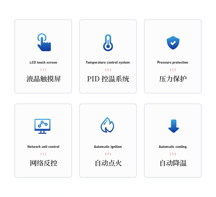 ● 拥有核心温控开发技术,PID温度控制系统,利用总线开发技术特点,采用控制芯片,控温软硬件双重过温保护,使得温控系统运行时间长,可靠耐用。