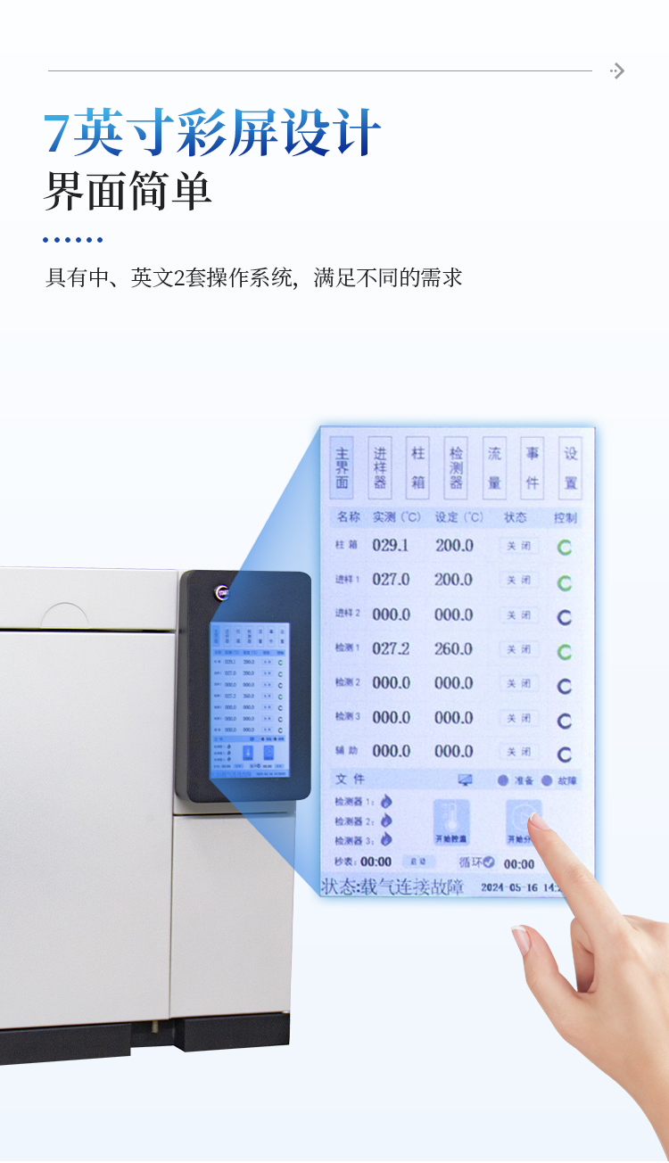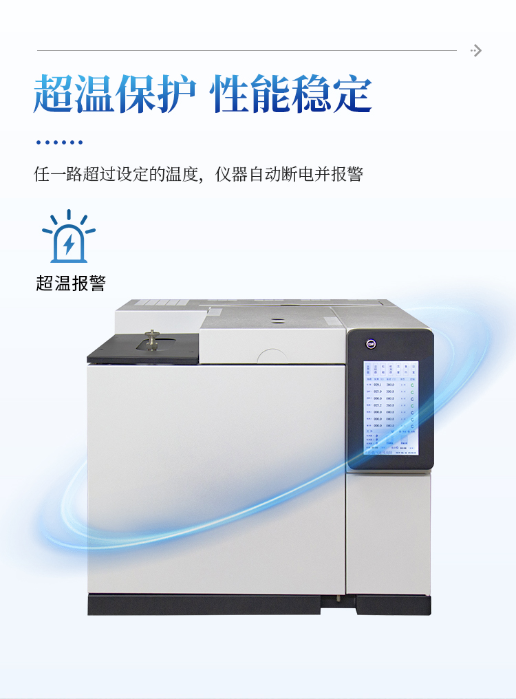 ● 载气具有压力保护功能,气体压力低0.4mpa时仪器自动切断电源有效保护色谱柱使用安全。