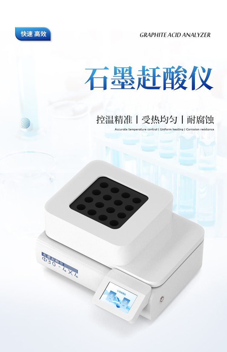 石墨赶酸仪,具有快速、高效、便捷等优点,适用于食品、药品、质检、环保、疾控、化工、高校等行业样品的处理。可用于微波消解的预处理和赶酸处理,是原子吸收、原子荧光、ICP-AES等分析仪器的理想配套产品,更适合与微波消解仪配套使用。