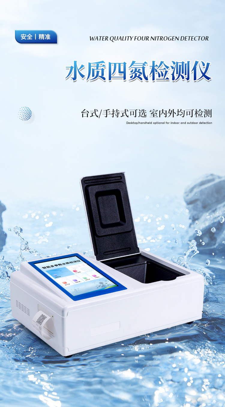 手持式水质四氮检测仪主要检测水体中的氨氮、硝酸盐氮、亚硝酸盐氮、总氮含量;参考国标以及环境标准研发设计制造,仪器配备高清晰度彩色液晶触摸显示屏,Android智能操作系统,中文显示界面,中英文键盘,人性化操作,使用更简单;