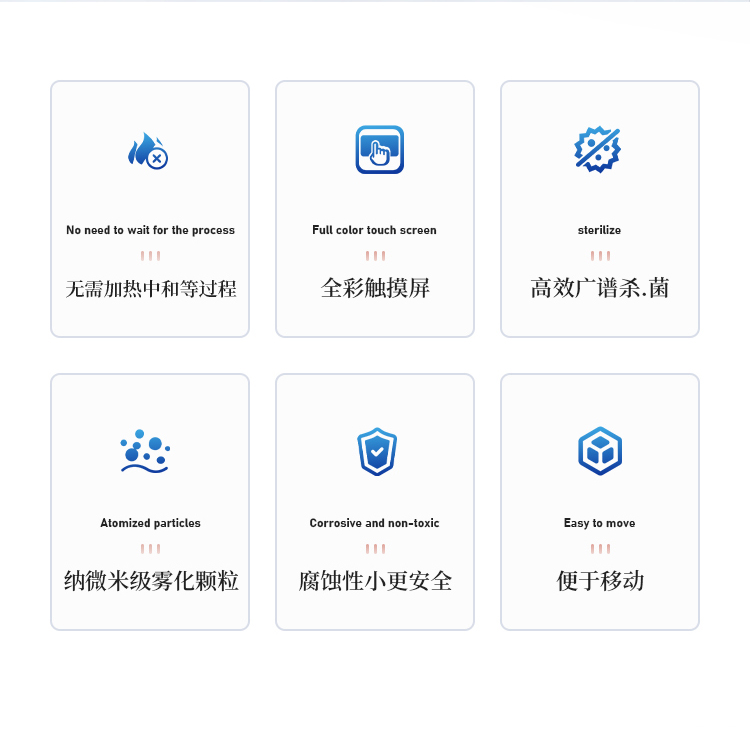 过氧化氢消毒机利用低浓度的过氧化氢消毒剂来实现消毒效果;主要用于室内环境和中央空调系统,可快速杀灭封闭空间中空气和物体表面的空气自然菌、白葡萄球菌。使用低浓度的过氧化氢,每立方米仅需几毫升的用量,且环境湿度仅上升少许。在消毒过程中,无需加热、中和等过程,方便快捷。广泛应用于医院、疾控中心、实验室、生物制品等领域。