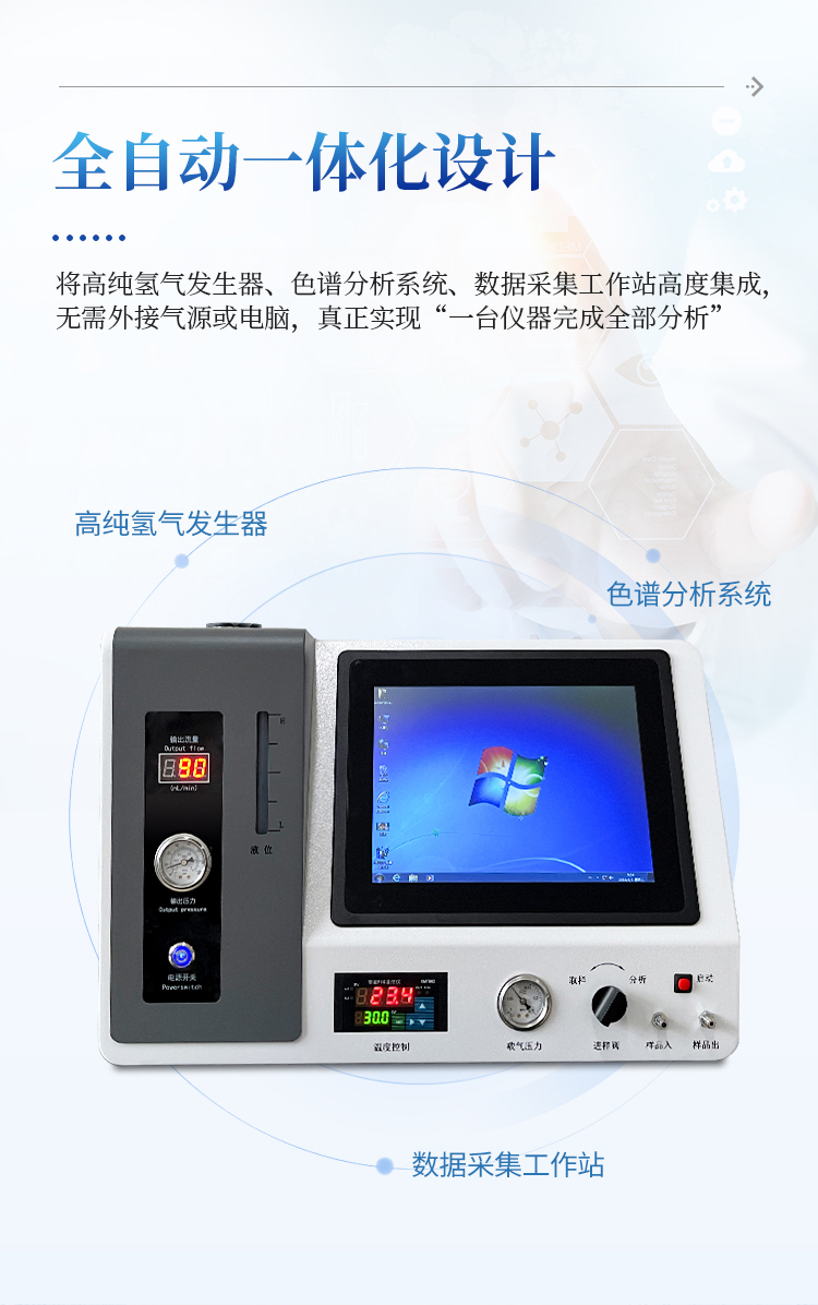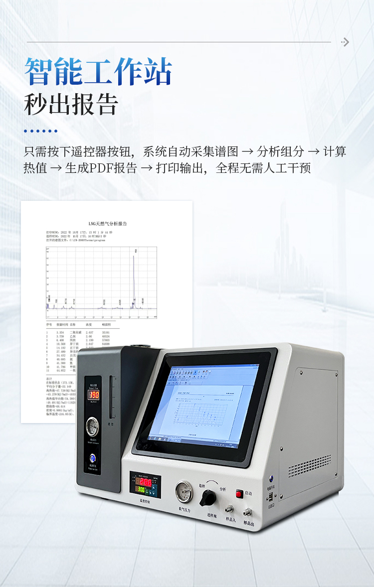 工作站完美结合 ,检测和显示于一体 ,通过一次进样可以完成 气体中含量的精确分析 ,可直接打印分析报告