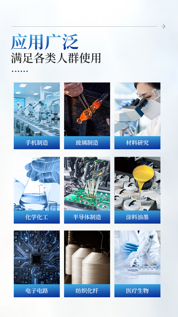 接触角测量仪广泛应用于各个行业领域,在手机制造、玻璃制造、表面处理、材料研究、化学化工、半导体制造、涂料油墨、电子电路、纺织纤维、医疗生物等领域,接触角测量已经成为了一项评估表面性能的重要仪器。