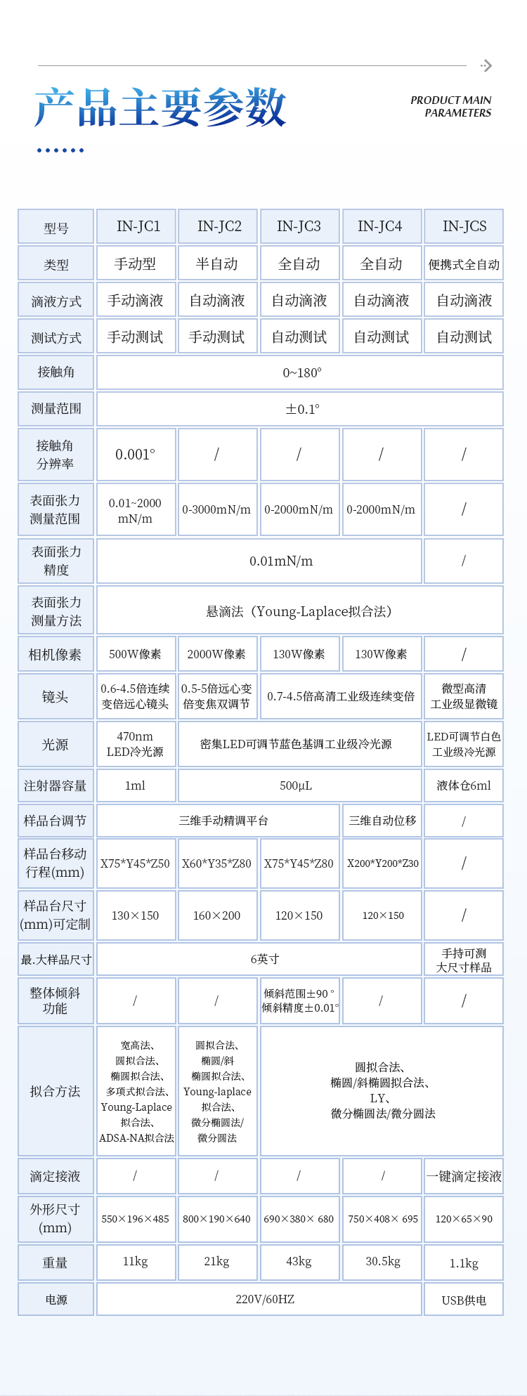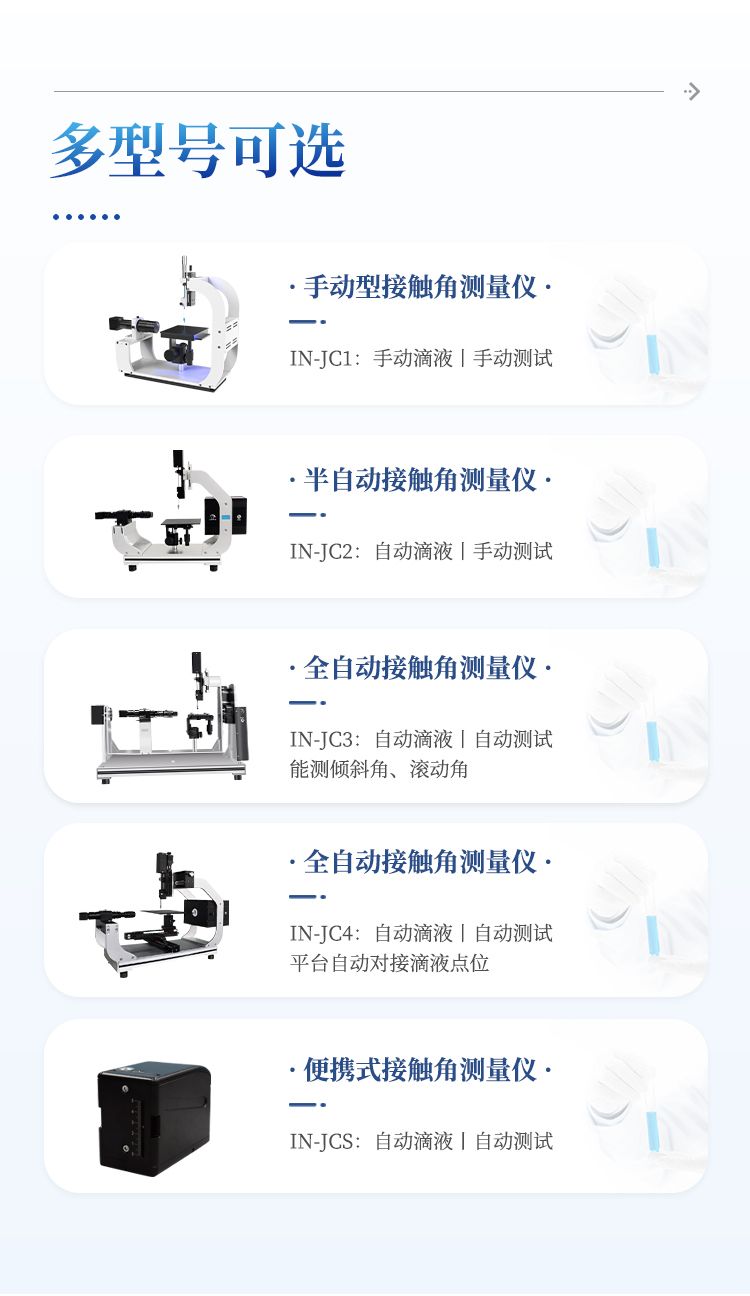 IN-JC2研究型接触角测量仪是采用光学成像的原理,设备采用图像轮廓分析方式测量样品表面接触角、润湿性能、表界面张力、前进后退角、表面能等性能,设备采用全自动进液装置,性价比高、拓展性强、功能全面、可满足各种常规测量需求,目前已经广泛使用在众多高校院所及企业。