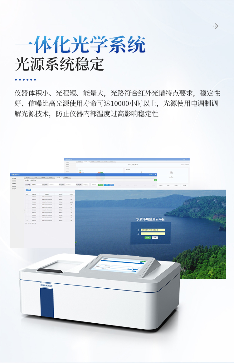 5.光源使用寿命可达10000小时以上,光源使用电调制调解光源技术,防止仪器内部温度过高影响稳定性;