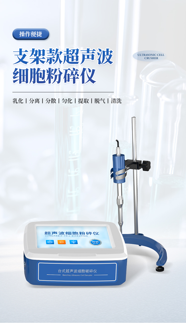 超声波细胞破碎仪是一种利用强超声在液体中产生空化效应,对物质进行超声处理的多功能、多用途的仪器,能用于动植物组织、细胞、细菌、芽胞菌种的破碎,同时可用来乳化、分离、分散、匀化、提取、脱气、清洗及加速化学反应等等。