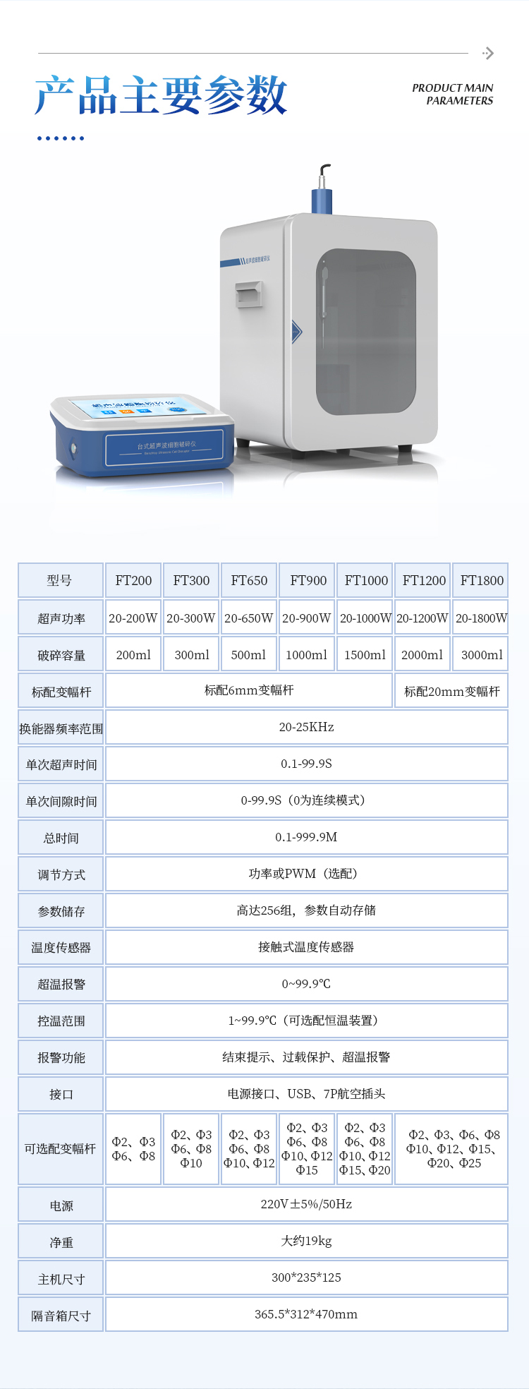 4.破碎容量:0.5--3000ml(需选配相应的变幅杆)