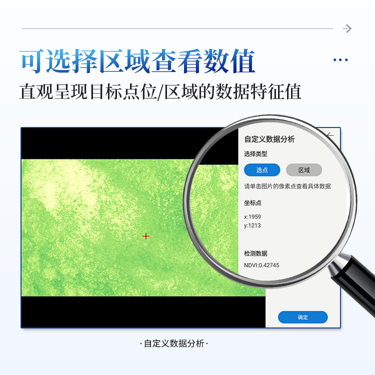 1. 检测项目:归一化植被指数NDVI、覆盖度FVC、比值植被指数RVI、差异植被指数DVI、土壤调整植被指数SAVI、 红边叶绿素植被指数RECI、改良土壤调整植被指数MSAVI、优化的土壤调节植被指数OSAVI、绿度色彩指数GCC、相对红度指数RCC、相对蓝度指数BCC