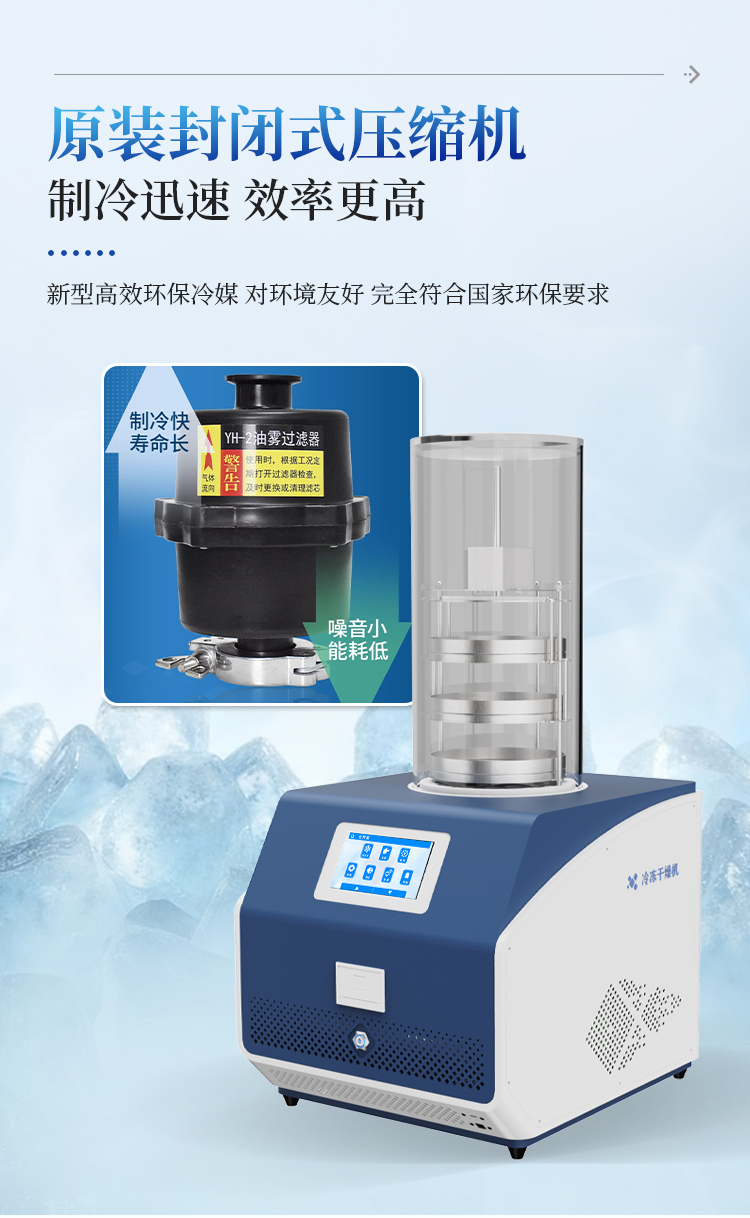 冷冻干燥机是一种利用真空冷冻干燥技术进行物质干燥的设备。其基本原理是将含水物质先冻结成固态,然后通过升华原理使水分从固态直接升华为气态,从而去除水分,保存物质。冻干机广泛应用于医药、生物制品、食品等领域,具有干燥效果好、保存时间长、复水性好等优点。