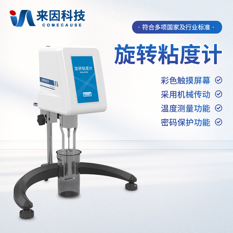 简要描述: 粘度测试仪采用机械传动,通过手动摇杆实现升降,具有低噪音、便携性强的特点;具有温度测量功能,判断样品在恒温状态,可以使检测结果更稳定;可外接恒温装置,使样品处在恒温状态下检测,更稳定更准确;转矩保护功能:超量程自动保护,并提示用户更换转子或降低转速;转矩监测功能:智能识别最合适的转子和转速并提示用户。测量旋转部件在液体中受到的阻力来确定液体的粘度。旋转粘度计广泛应用于化工、食品、医药、石油等行业,用于质量控制、研发和生产过程中的粘度测量。5英寸高清LCD彩色触摸屏;配方存储:将已验证的检测方案系统化归档,支持快速复用与团队协作。