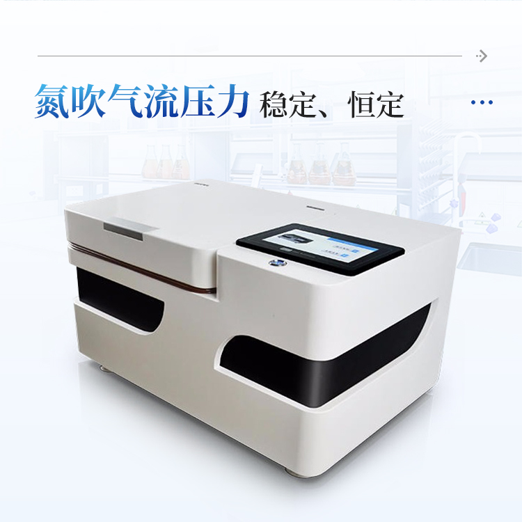 4、氮吹气流压力稳定、恒定:仪器自带自动调压装置,气流压力可自动控制并保持恒定,不受工作通道(样品)突然开启、关闭或数量的影响;