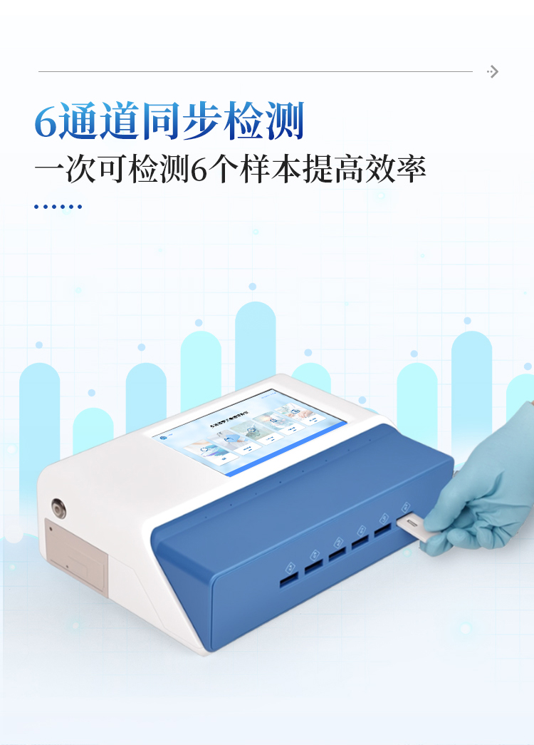 9、检测时间:< 5秒 (单卡及多联卡);可对样本进行胶体金定性/半定量检测。
