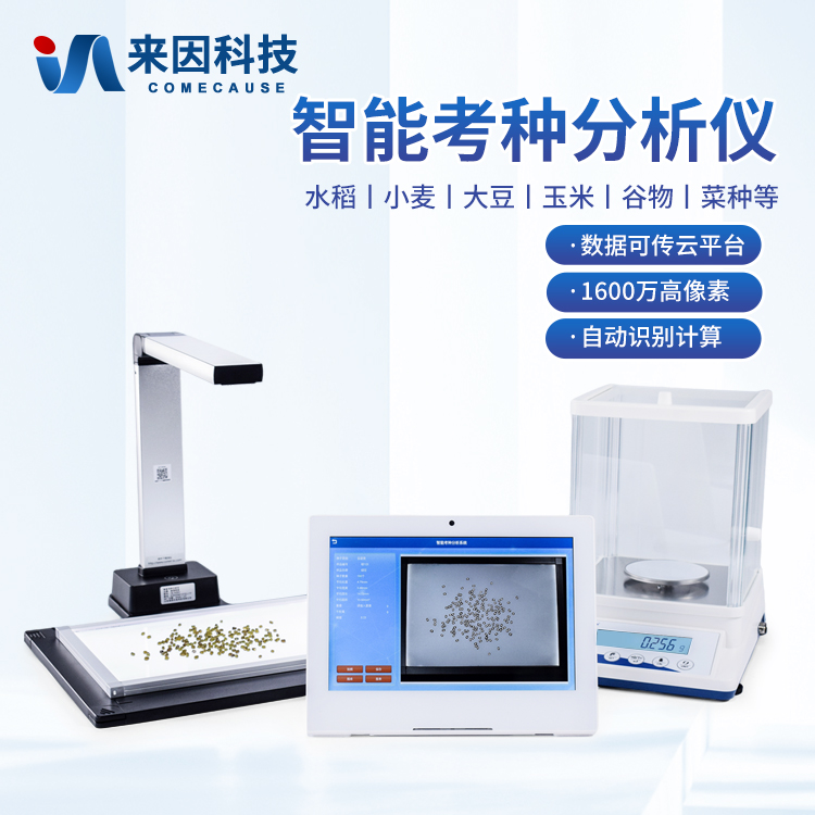 简要描述: 智能考种仪由三部分组成:1600万高拍仪、背光装置和装有嵌入式软件的平板。背光装置采用的是高亮LED灯,外边框使用铝合金材质制成。软件采用先进的图像处理技术,根据距离变换原理、形态学、凸包检测等技术综合设计的一款嵌入式软件。该设备主要应用在农业领域的田间作物测产及考种等方面,通过高拍仪拍摄的照片,软件自动计算种子数量,种子的面积、周长、长度、宽度、长宽比等数据,根据天平所得的重量与种子的数量自动计算出千粒重;以列表和图形的方式输出结果,便于用户查看与分析研究。
