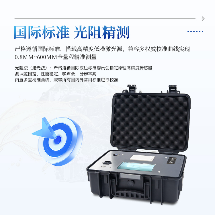 内置IS04406、NAS1638、SAE4059、GJB420A、GJB420B、 ГOCT17216、GB/T14039 颗粒污染度等级标准;