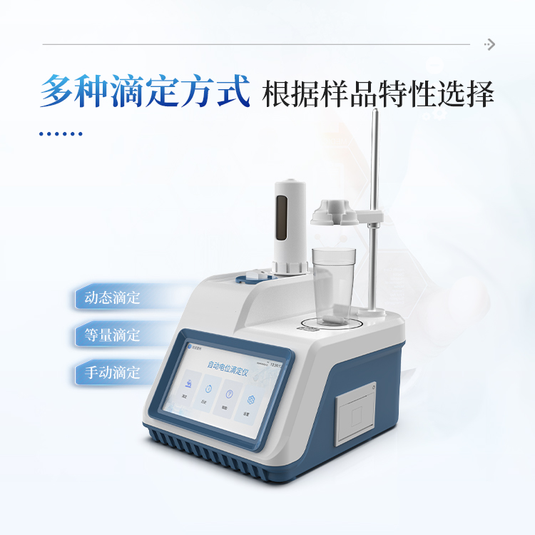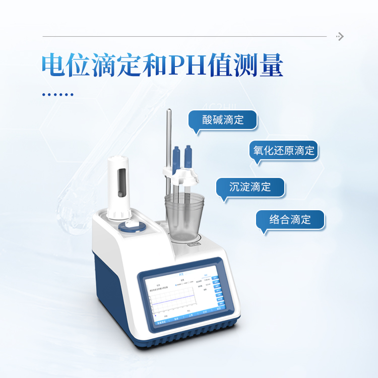 1、设备支持电位滴定和pH值测量;用户选择不同电极可进行酸碱滴定、氧化还原滴定、沉淀滴定、络合滴定等多种滴定和pH测量;