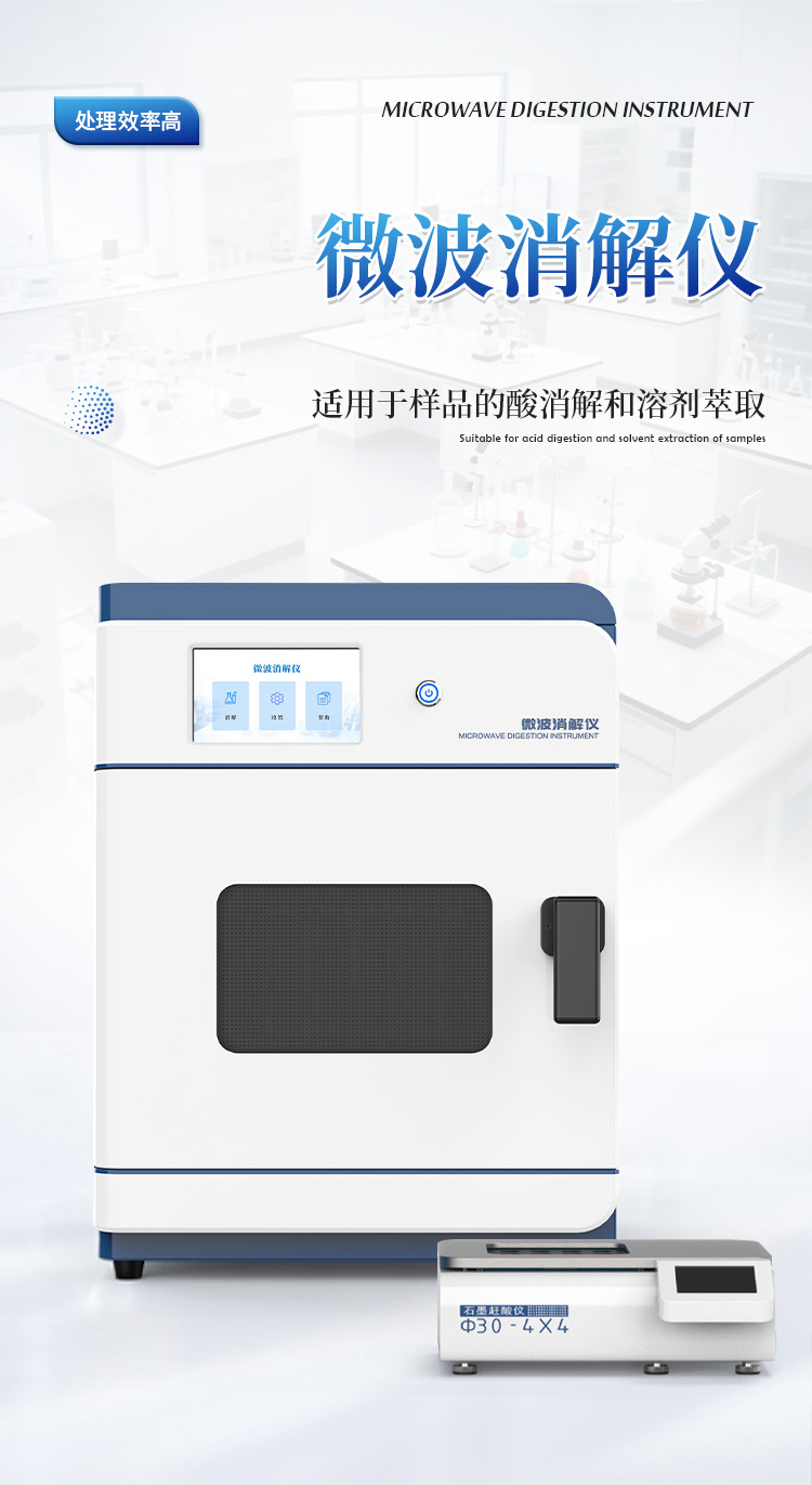 简要描述: 高通量微波消解仪是一种用于样品前处理的设备,通过微波加热技术对样品进行快速、有效的消解。该仪器广泛应用于食品、环境保护、疾病控制、质量监督、商品检验、科研院所等领域,特别适用于各种样品的酸消解和溶剂萃取。