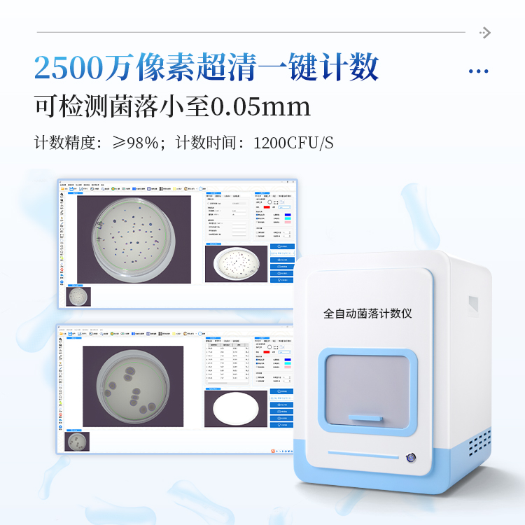 简要描述: 全自动菌落计数仪是一款集图像采集、数据处理与统计于一体的自动菌落计数,广泛应用于食品、药品、化妆品、环境监测、医疗卫生、科研院校等领域的菌落计数。该仪器采用先进的数字图像处理技术,具备荧光菌识别和杀菌功能,可实现对培养皿中菌落的快速、准确、全自动计数,显著提升实验效率,降低人工误差。