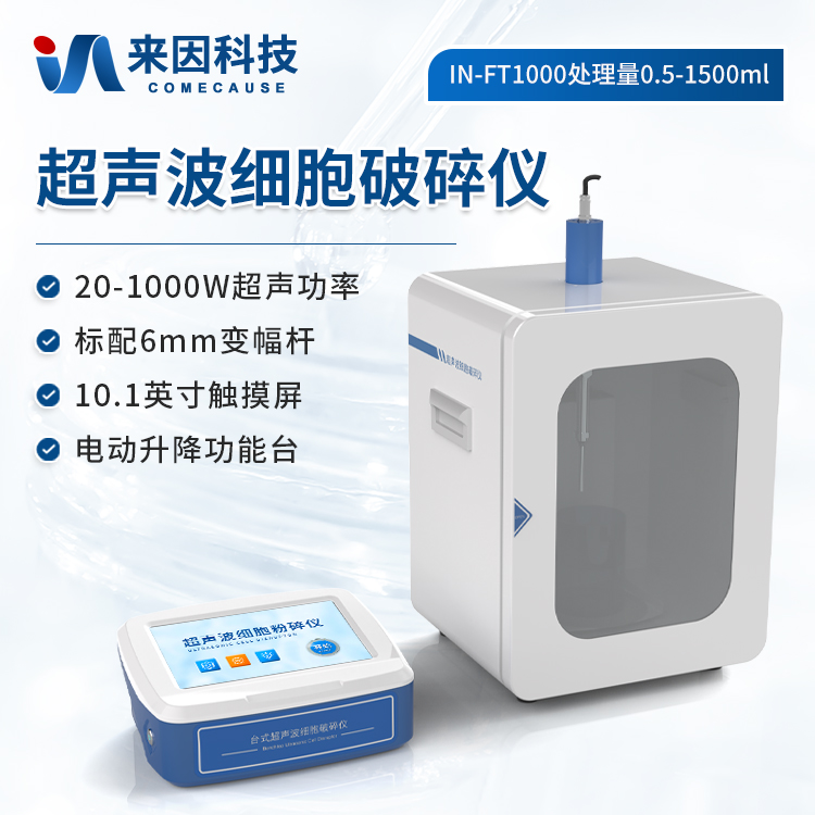 利用超声波在液体中的分散效应,使液体产生空化的作用,从而使液体中的固体颗粒或细胞组织破碎.超声波细胞粉碎机由超声波发生器和换能器二大部分组成。超声波发生器将市电转变成20-25KHz交变电能供给换能器。锆钛酸钡压电振子是换能器的心脏,它随交变电压以20-25KHz频率作伸缩弹性形变,换能器随之作纵向机械振动。振动波通过浸入在生物溶液中的钛合金变幅杆产生空化效应,激发介质里的生物微粒剧烈振动。