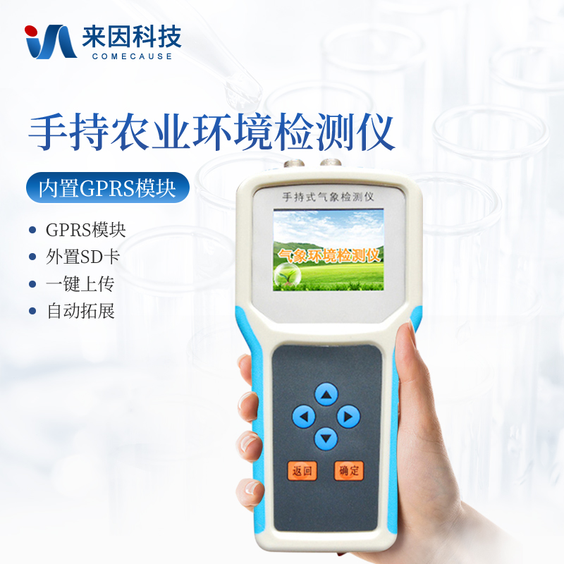 手持式智能农业气象环境检测仪是我们专门针对农田、草场局部小尺度环境设计的,对与植被和农作物生长密切相关的土壤、水气等环境参数监测的农田小气候站。它主要观测与农业相关的空气温度、空气湿度、光照强度、二氧化碳浓度、露点温度、光合有效辐射、土壤温度、土壤水分、土壤盐分、土壤PH、风速、风向等12个环境参数气象要素,为农业科研、农业生产等提供良好的支持。