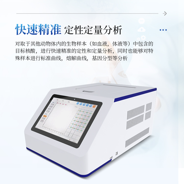 对取于其他动物体内的生物样本(如血液,体液等)中包含的目标核酸,进行快速精准的定性和定量分析,同时也能够对特殊样本进行标准曲线,熔解曲线,基因分型等分析。