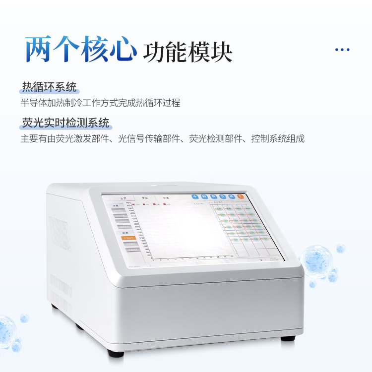 P32型号 实时荧光定量PCR仪器的原理:聚合酶链式反应(polymerase chain reaction,PCR)是一种用于放大扩增特定的DNA片段的分子生物学技术,它可看作是生物体外的特殊DNA扩增,由高温变性、低温退火及适温延伸等几步反应组成一个温度循环周期,使目的基因得以迅速扩增,具有特异性强、灵敏度高、操作简便、省时等特点,是基因扩增技术的一次重大革新。PCR技术可将极微量的目标DNA特异地扩增上百万倍,从而大大提高对DNA分子的分析和检测能力。