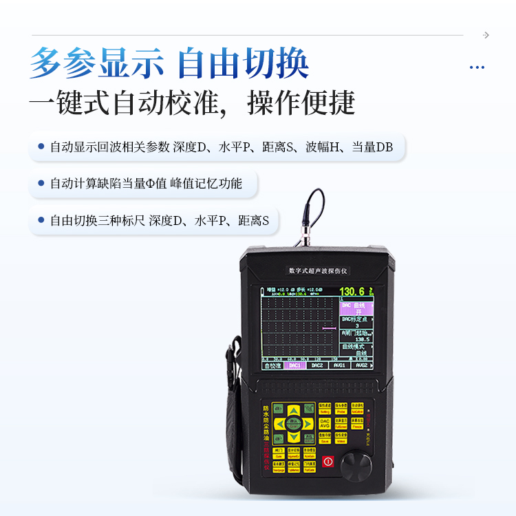 3、自动校准:一键式自动校准,操作便捷,自动测试探头的“零点”、“K值”、“前沿”及材料的“声速”;